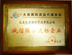 獲得大連國際貨運(yùn)代理協(xié)會(huì)誠信服務(wù)達(dá)標(biāo)企業(yè)稱號(hào)